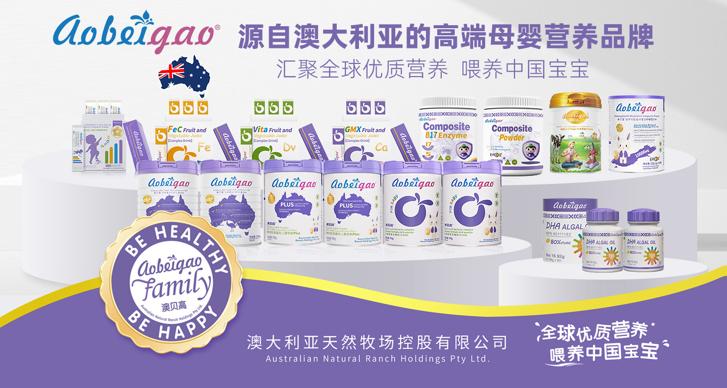 Aobeigao澳貝高是專注于嬰童營養(yǎng)健康的品牌,隸屬于澳大利亞天然牧場控股有限公司旗下的高端兒童營養(yǎng)食品品牌,由其子公司中童營養(yǎng)品(廣州)有限公司全權(quán)運(yùn)營。其研發(fā)團(tuán)隊(duì)與國內(nèi)外專業(yè)營養(yǎng)研究機(jī)構(gòu)緊密合作,結(jié)合中國嬰童的綜合體質(zhì),強(qiáng)調(diào)配方基于《中國居民膳食指南》嬰童要求,致力于研發(fā)更適合中國嬰童的營養(yǎng)食品。