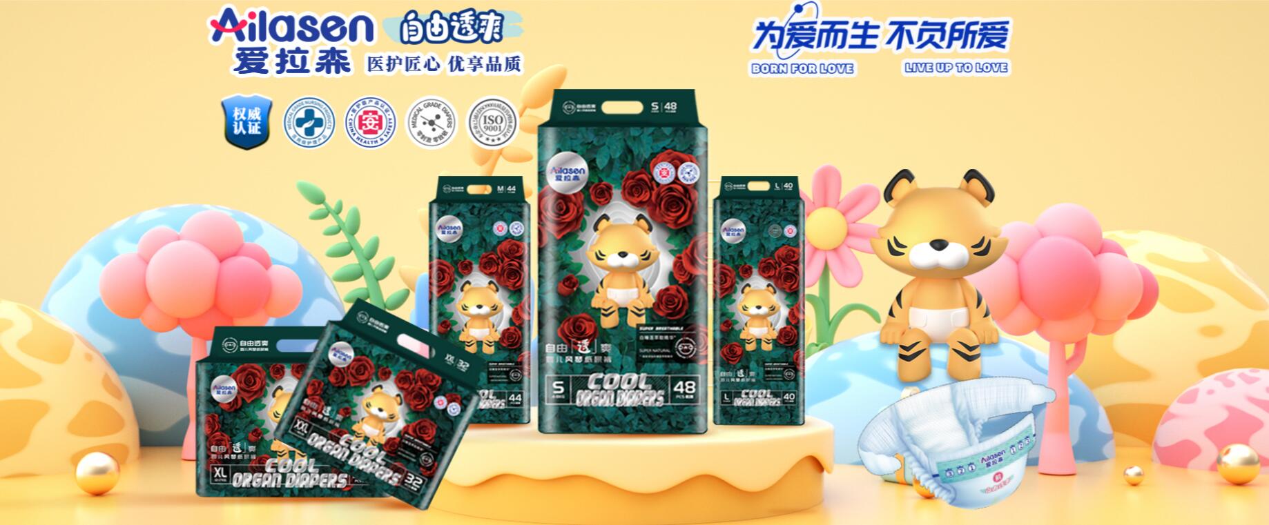 品牌名稱:愛拉森 主營(yíng)產(chǎn)品:愛拉森紙尿褲,愛拉森拉拉褲,愛拉森棉柔巾,愛拉森柔紙巾 品牌特色:棉柔舒適 干爽透氣