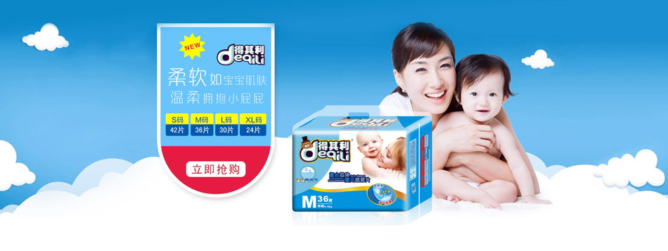 品牌名稱:得其利 主營產(chǎn)品:得其利嬰幼兒紙尿褲 品牌特色:柔軟 親膚 透氣