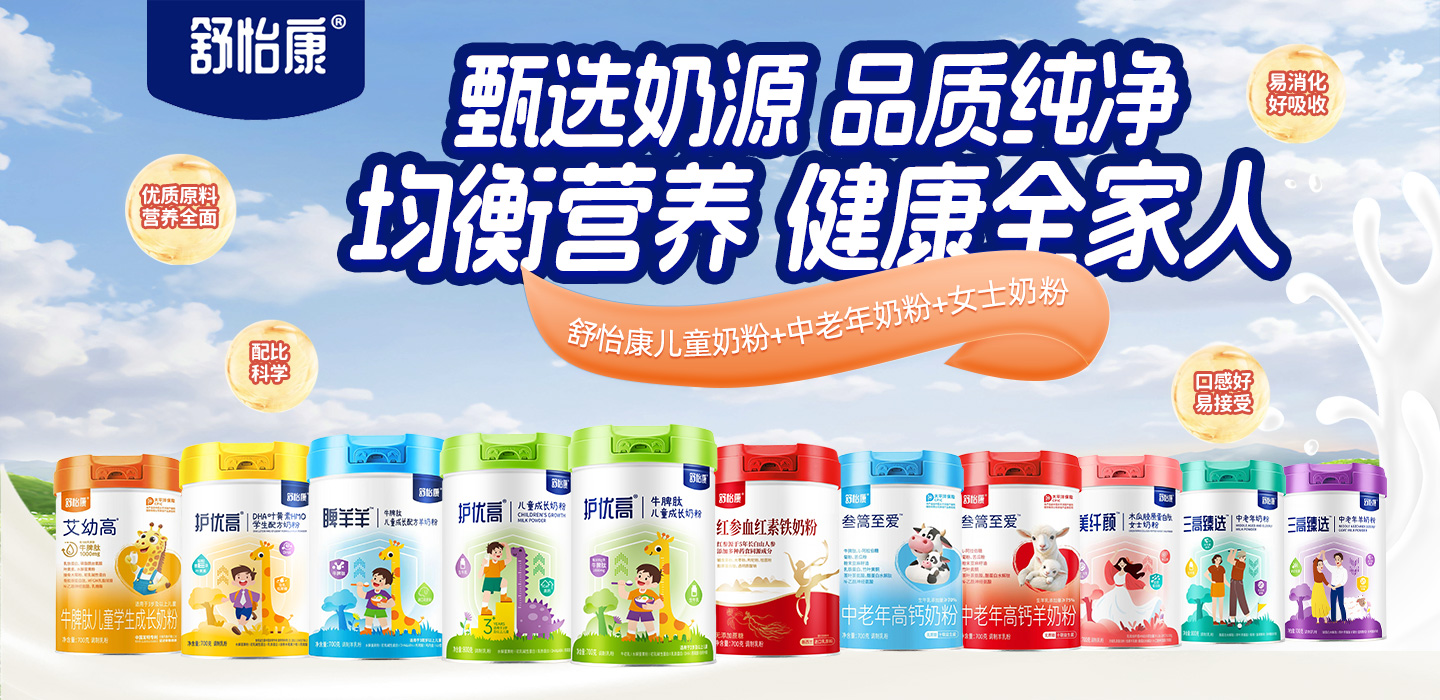 舒怡康,專注于奶粉的研發(fā)和生產(chǎn),旗下?lián)碛袃和谭、中老年奶粉、女士奶粉、兒童羊奶粉、中老年羊奶粉等,甄選優(yōu)質(zhì)奶源,科學(xué)配比,均衡營養(yǎng),口感美味,滿足不同群人營養(yǎng)之需。