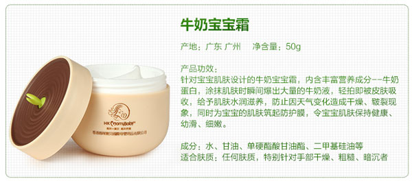 香港媽咪寶貝牛奶寶寶霜是母嬰市場新款護(hù)膚品,植物萃取,獨(dú)家專利72小時(shí)長效護(hù)膚,讓肌膚體驗(yàn)“爆奶”快感,使寶寶肌膚水潤柔滑,一經(jīng)推出飽受贊譽(yù)。