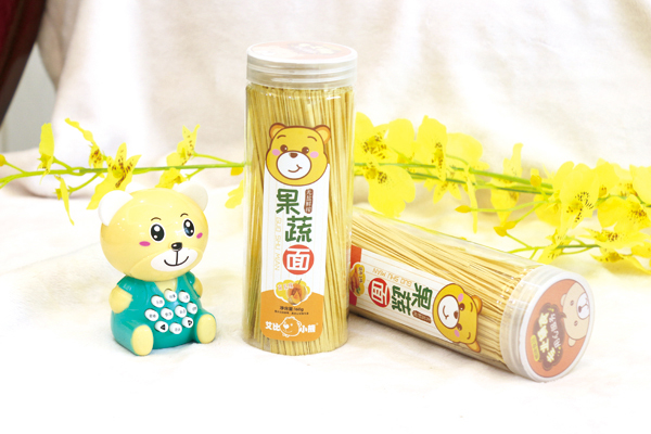 艾比小熊面條系列按造型分,有果蔬面、螺旋面、卡通面和海螺面;按口味分,有南瓜、混合、胡蘿卜、菠菜、甜菜等口味,以天然小麥粉為原料,小麥粉有著豐富的淀粉、蛋白質(zhì)、粗纖維、脂肪油、蛋白質(zhì)酶及微量元素等