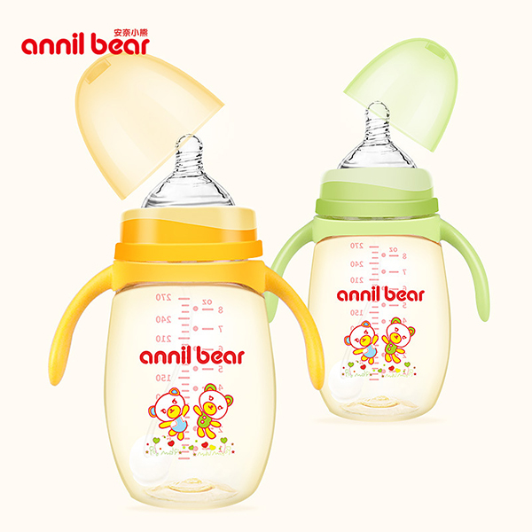安奈小熊標口PES奶瓶瓶身采用PES材質(zhì),質(zhì)地輕,耐高溫180度,安全無毒,不易破碎。