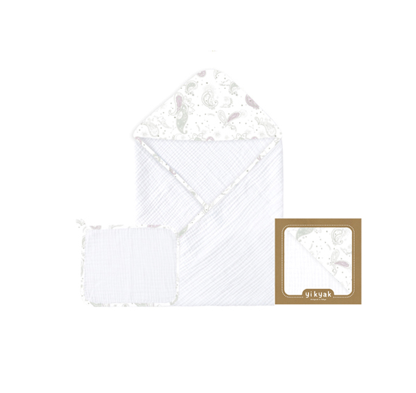 yikyak一體密織紗布連帽浴巾 浪漫滿屋(綠紫)