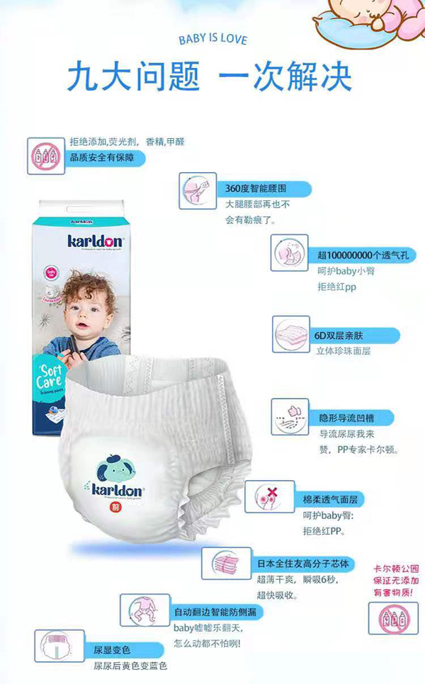 卡爾頓公園拉拉褲,專為長時間使用而設(shè)計,能持久保持寶寶小屁屁干爽,透氣加倍,遠離紅屁屁!快速6秒瞬吸鎖水,超薄柔軟,百分百全住友吸水因子,當(dāng)然更“靠譜”!6D復(fù)合技術(shù),隱藏式導(dǎo)流凹槽工藝,上億個微孔透氣,干雙加倍,舒適加倍!同時更采用人體工程學(xué)設(shè)計,貼合小屁屁,減少腿部摩擦,穿脫建議,寶寶喜歡,媽媽省心!