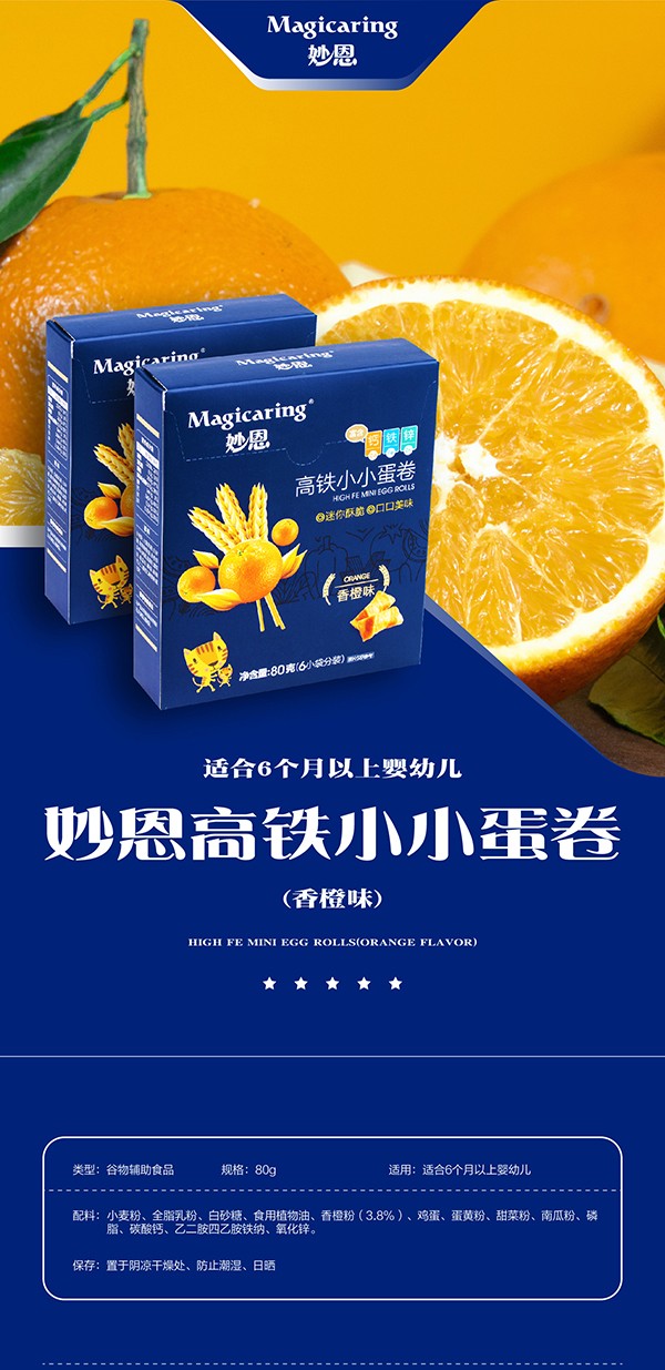 妙恩高鐵小小蛋卷 鈣鐵鋅強(qiáng)化營養(yǎng)更全面