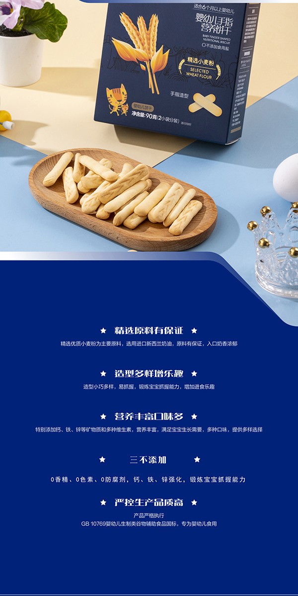 嬰標GB-10769,不添加香精、色素、防腐劑;0添加白砂糖;0添加食鹽;鈣鐵鋅強化;進口新西蘭奶油,安全健康,美味營養(yǎng),好吃又好玩,相伴童年美妙時光!
