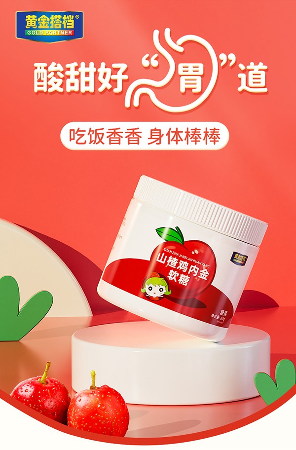黃金搭檔山楂雞內(nèi)金軟糖,植物草本配方,綠色安全!精選果實(shí)飽滿的優(yōu)質(zhì)山楂為原料,更添加雞內(nèi)金提取物、維生素C等,科學(xué)配比,美味營(yíng)養(yǎng)!以麥芽糖醇代替蔗糖,降低甜度,呵護(hù)幼齒!顆顆獨(dú)立包裝,干凈衛(wèi)生易攜帶,拆袋即食,酸甜口感,拯救“小飯?jiān),讓孩子“食”力全開(kāi),茁壯成長(zhǎng)!
