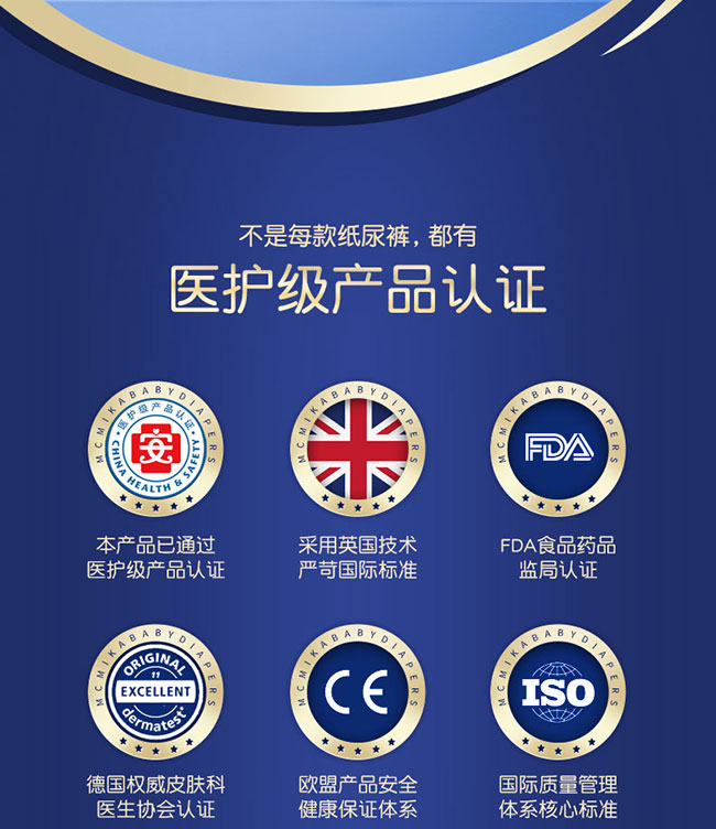 它的 “硬核” 首先藏在認(rèn)證里。作為醫(yī)護(hù)級(jí)紙尿褲,它通過(guò)了多國(guó)檢測(cè)認(rèn)證,從原料到生產(chǎn)都經(jīng)過(guò)嚴(yán)格把控,給寶寶的守護(hù)多了一層專業(yè)保障,寶媽選的時(shí)候不用再反復(fù)對(duì)比成分表,省心又安心。