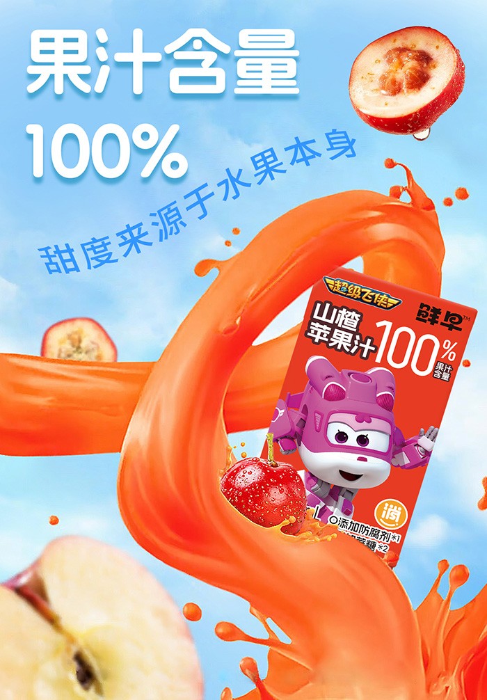 鮮早超級(jí)飛俠100%鮮橙蘋果汁終端熱賣,深受代理喜愛(ài)