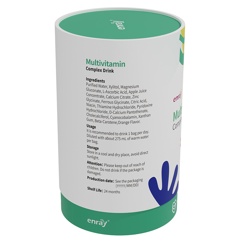 【配料】水、木糖醇、葡萄糖酸鎂、濃縮蘋果汁、檸檬酸鈣、甘氨酸鋅、甘氨酸亞鐵、檸檬酸、煙酸、鹽酸硫胺素、鹽酸吡哆醇、D-泛酸鈣、膽鈣化醇、氰鈷胺、黃原膠、β-胡蘿卜素、甜橙油。