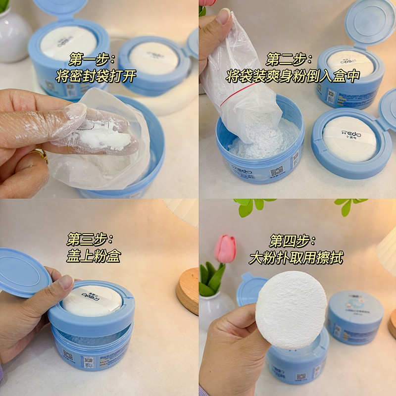 小奕噠小甘菊爽身粉,針對幼嫩特殊膚質(zhì)研制,配方溫和純凈,含玉米定粉,特含云母粉、野菊花等,科學配比,呵護幼嫩肌膚。不含滑石粉,粉質(zhì)細膩柔滑,吸濕不黏?晌テつw及皮膚褶皺處多余的濕氣,保持身體干爽舒適。減少皮膚與衣物產(chǎn)生的摩擦,呵護肌膚干爽不油膩,讓寶寶感覺滋潤又清爽。