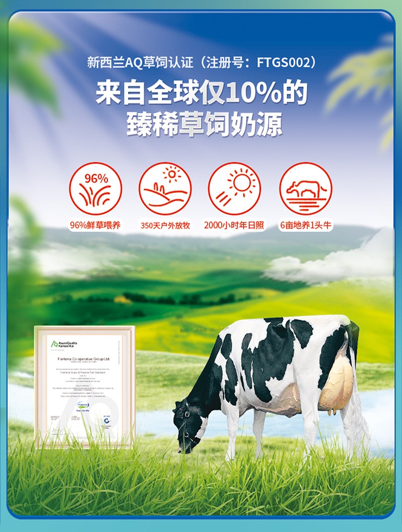高培佳配幼兒配方奶粉,來自全球僅10%的臻稀草飼奶源,新西蘭AQ認(rèn)證草飼奶源,96%鮮草喂養(yǎng),350天戶外放牧,2000小時(shí)年日照,6畝地養(yǎng)1頭牛。配方中,科學(xué)添加18種腦營養(yǎng)、300倍益生菌。營養(yǎng)好吸收,成長更健康。