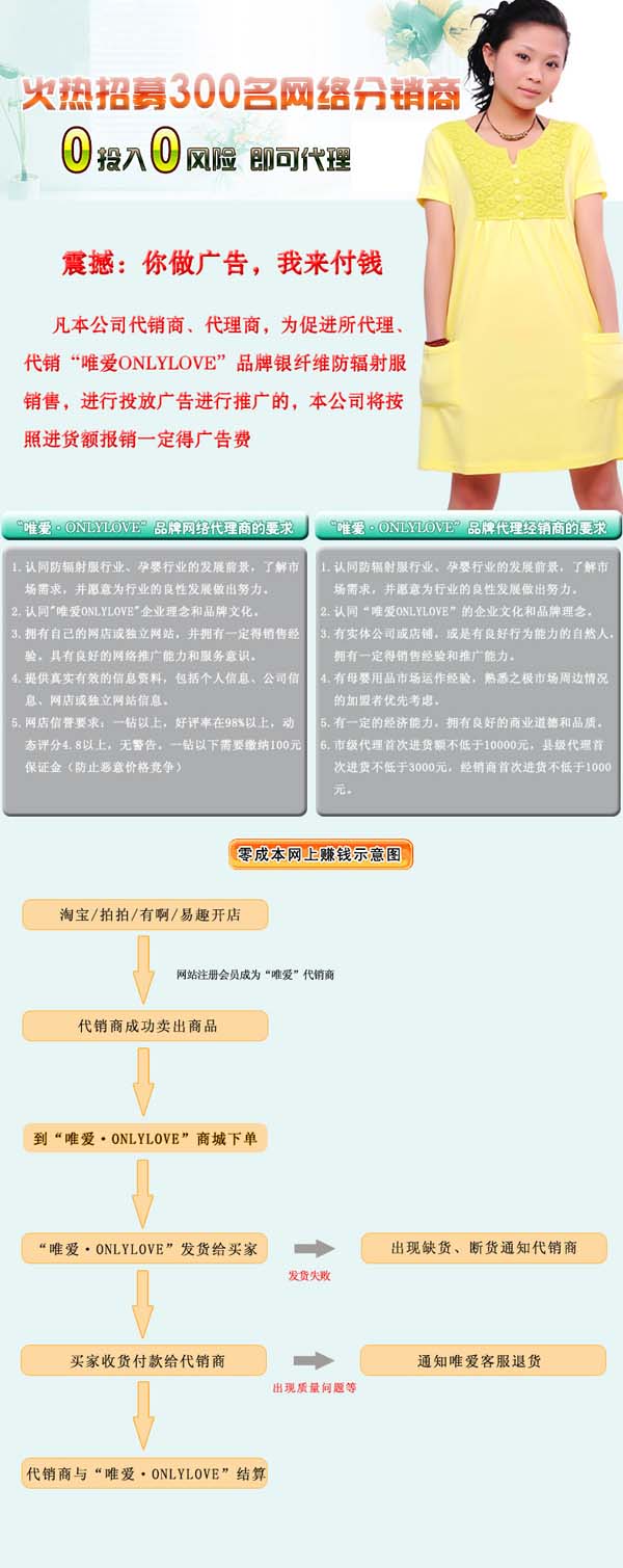 公司面向國內(nèi)市場,以時尚孕婦裝、納米銀纖維防輻射服裝為主導(dǎo)產(chǎn)品,擁有一流的設(shè)計研發(fā)隊伍、一流的生產(chǎn)力量、獨特營銷理念、全方位的客戶服務(wù),努力用一年的時間使“唯愛ONLYLOVE”成為知名互聯(lián)網(wǎng)品牌,進(jìn)而成為行業(yè)領(lǐng)導(dǎo)品牌!