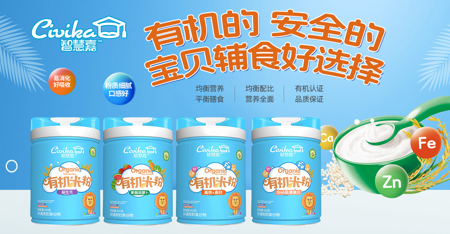 智慧嘉,是江西齊慧樂實(shí)業(yè)有限公司旗下品牌,產(chǎn)品主要有有機(jī)米粉、水果奶米粉、益生菌米乳、小米米粉等輔食產(chǎn)品,蛋白質(zhì)粉、凝膠糖果、清清寶、葡萄糖、營(yíng)養(yǎng)素、營(yíng)養(yǎng)包等營(yíng)養(yǎng)食品產(chǎn)品,滿足寶寶生長(zhǎng)發(fā)育所需的各種營(yíng)養(yǎng)素,是中國(guó)寶寶添加輔食營(yíng)養(yǎng)的理想選擇。