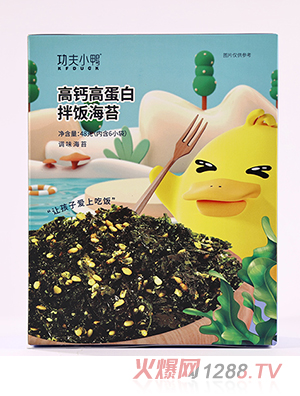 2.功夫小鴨夾心海苔不同于市面上其他同類產(chǎn)品,我們產(chǎn)品全程零添加,不含任何香精及防腐劑,采用烤制工藝,不加任何液體調(diào)味料,限度地保持海苔鮮美口感。