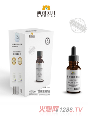 美可貝兒富鋅滴液,采用益生元加多重富鋅配方組合,配料有低聚果糖、濃縮葡萄汁、濃縮山楂汁、木瓜酵素(木瓜、木瓜蛋白酶)、山核桃、牡蠣粉、小麥胚粉等。