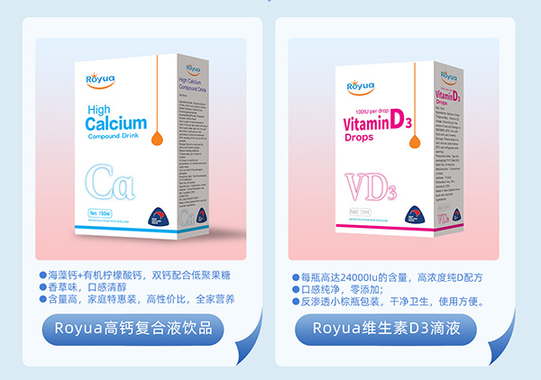 那么,目前“羅伊優(yōu)養(yǎng)”品牌旗下都擁有哪些熱賣爆品呢?如Royua高鈣復(fù)合液、高纖復(fù)合液、維生素D3復(fù)合液、活性益生菌以及羅伊優(yōu)養(yǎng)即食型益生菌,奶味、蔓越莓兩大配方,款款好營養(yǎng)!始終堅持以嚴格的配方,嚴謹?shù)臋z驗體系,全球頂尖原料供應(yīng),先進的生產(chǎn)工藝,用心做好每款產(chǎn)品,專業(yè)為中國家庭提供更專業(yè),更全面,更合適,更安全的優(yōu)養(yǎng)方案,造福中國千千萬萬家庭!