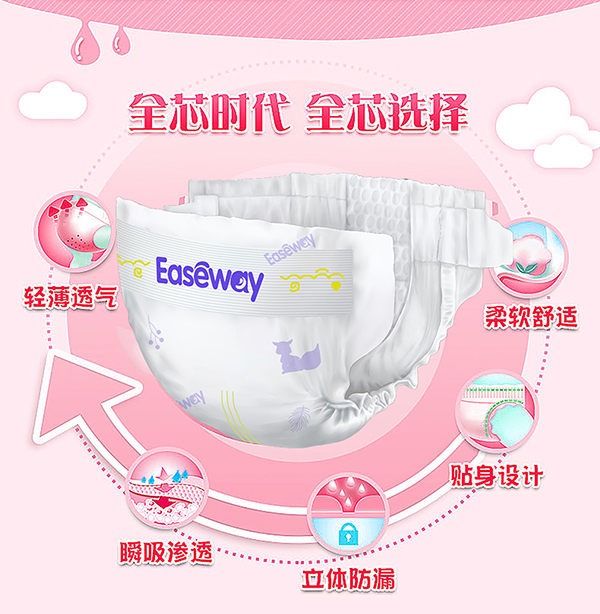宜氏紙尿褲,采用3D打孔親膚層,打孔表層在皮膚和尿褲之間形成空氣通道,當(dāng)尿液接觸的時候,首先流入打孔通道中快速吸收,使皮膚接觸面始終保持干爽。使用輕巧透氣的新研發(fā)芯體,保證嬰兒屁股舒適干爽,讓寶寶的肌膚時刻保持充分呼吸。宜氏紙尿褲專為長時間使用而設(shè)計,保證嬰兒屁股舒適干爽,不會因長期使用而造成斷裂,夜間長效干爽。