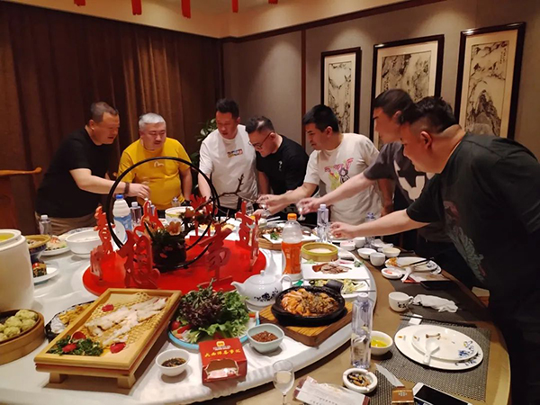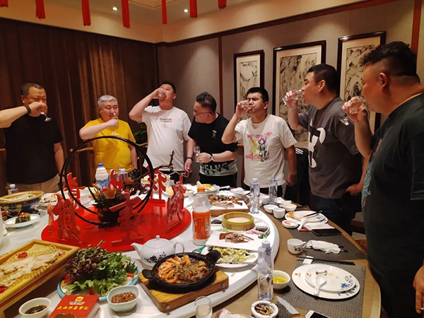 菲瑞營銷中心總經(jīng)理及銷售總監(jiān)陪同貴客,在當天的“歡迎晚宴”和遠道而來的“家人們”一起談未來、講生活,大家如親人般相談甚歡。