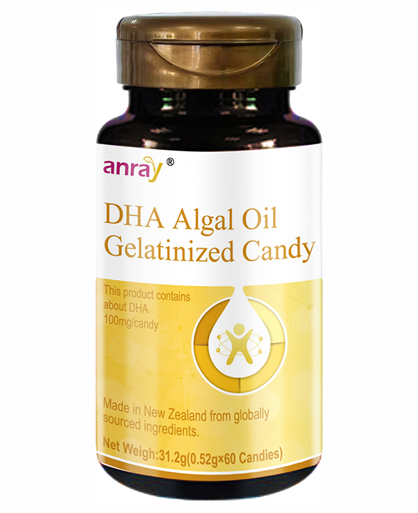 本品添加DHA藻油。每顆糖果DHA含量100毫克,DHA藻油推薦食用量≤300毫克/天(以純DHA計)