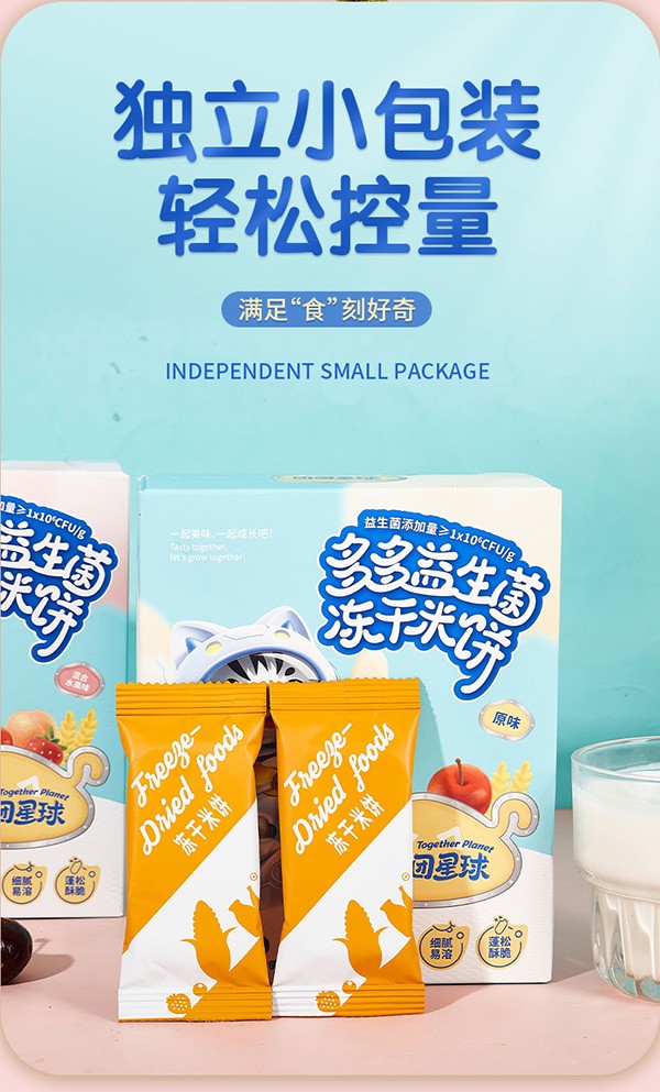 在新時代消費群體的健康理念下,90后00后的家長們更加注重寶寶入口零食的健康。對此團(tuán)團(tuán)星球兒童零食,一直專注于兒童入口的嬰童零輔食的健康與營養(yǎng),深入研究,注重生產(chǎn)的每一個細(xì)節(jié),用上乘的品質(zhì)征服了眾多消費者與經(jīng)銷商的心。這款團(tuán)團(tuán)星球多多益生菌凍干米餅-原味產(chǎn)品更是深受消費者的喜愛。
