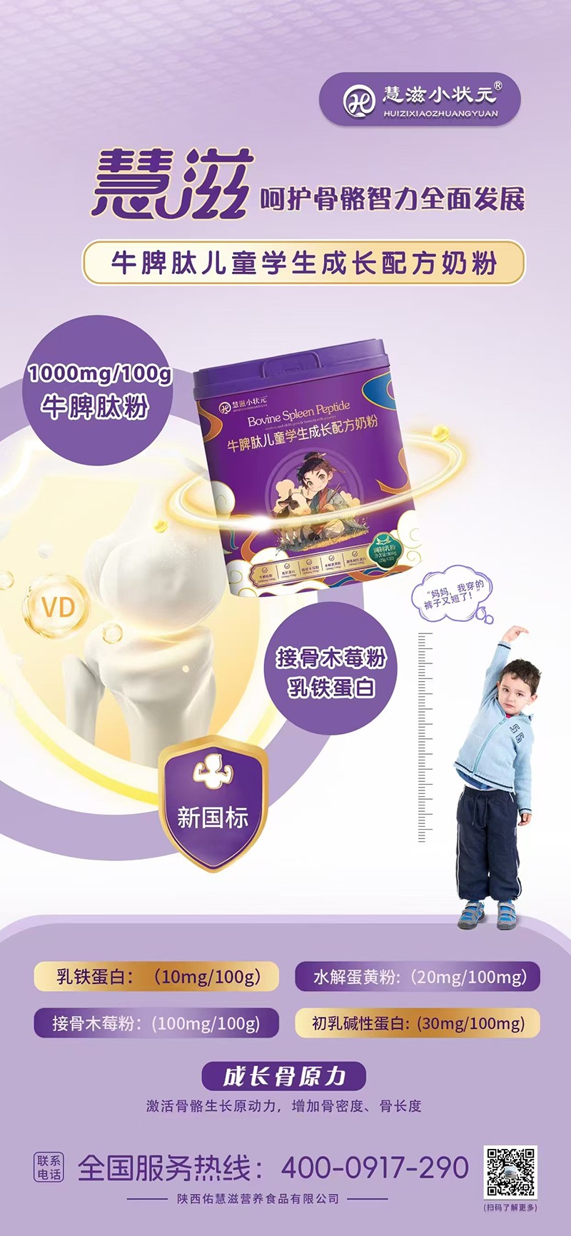 慧滋小狀元牛脾肽兒童學生成長配方奶粉