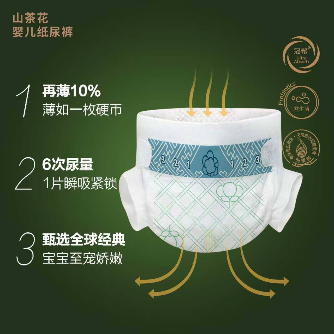 在產(chǎn)品外觀上,山茶花益生菌尿褲以純白山茶花為視覺核心,搭配清新綠葉元素,包裝設(shè)計盡顯自然質(zhì)感,在母嬰渠道中極具辨識度,能快速抓住消費者目光,為終端銷售賦能。