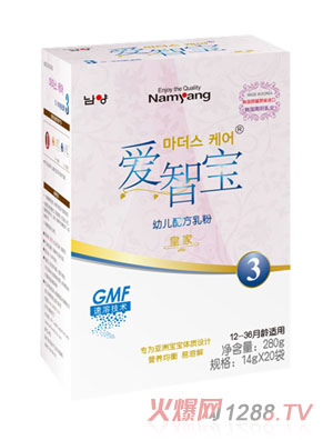 愛(ài)智寶為韓國(guó)南陽(yáng)乳業(yè)旗下主營(yíng)品牌。在中國(guó)青島喜恩喜國(guó)際貿(mào)易有限公司,是南陽(yáng)乳業(yè)集團(tuán)在中國(guó)的全資子公司,自2005年以來(lái),持續(xù)優(yōu)質(zhì)的為中國(guó)媽媽提供新鮮安全的嬰兒奶粉,愛(ài)智寶奶粉具有三大質(zhì)量環(huán)節(jié)。