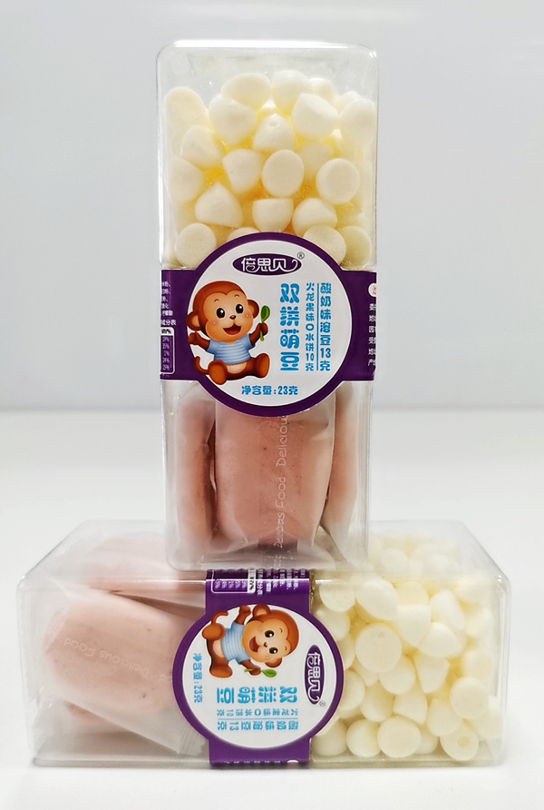 倍思貝雙拼萌豆系列,甄選優(yōu)質(zhì)原料,采用先進烘焙工藝制作,特別融合酸奶、果蔬等食材,碰撞出別樣美味,口水餅+溶豆雙拼組合,同時享受兩種美味,樂趣無窮。四種組合口味,分別為酸奶味口水餅+獼猴桃味溶豆、火龍果味口水餅+酸奶味溶豆、火龍果味口水餅+香橙味溶豆、酸奶味口水餅+火龍果味溶豆,巧妙雙拼,美味享受,而且無多余添加,易消化,無負擔,更健康。