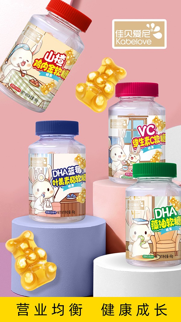 佳貝愛尼營養(yǎng)軟糖系列有DHA藻油葉黃素酯、山楂雞內(nèi)金、維生素C、DHA藻油等多款單品,優(yōu)選原料,科學配比,營養(yǎng)均衡豐富,且含純正果汁,水果味,好吃又營養(yǎng)。每粒獨立包裝,干凈衛(wèi)生,食用便攜。