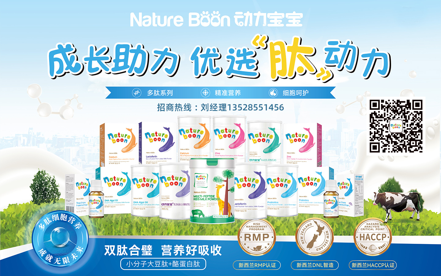 動(dòng)力寶寶Nature Boon,擁用自主研發(fā)生產(chǎn)工廠的新西蘭高端營(yíng)養(yǎng)品牌,擁有精準(zhǔn)配方海外同步推廣銷售的營(yíng)養(yǎng)品。動(dòng)力寶寶Nature Boon源自人與自然的和諧統(tǒng)一,代表了新西蘭純凈和諧之美。2018年,新西蘭高端乳品營(yíng)養(yǎng)品生產(chǎn)商DNL攜動(dòng)力寶寶營(yíng)養(yǎng)品登陸中國(guó),成長(zhǎng)助力,優(yōu)選肽動(dòng)力。