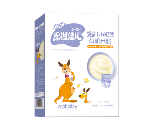 恩溢佳兒胡蘿卜+AD鈣有機(jī)米粉 盒裝產(chǎn)品展示