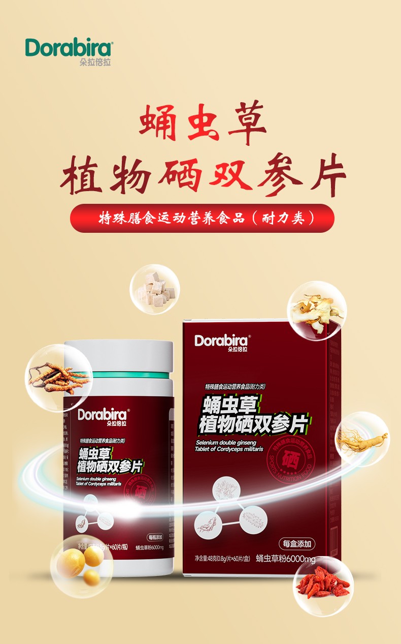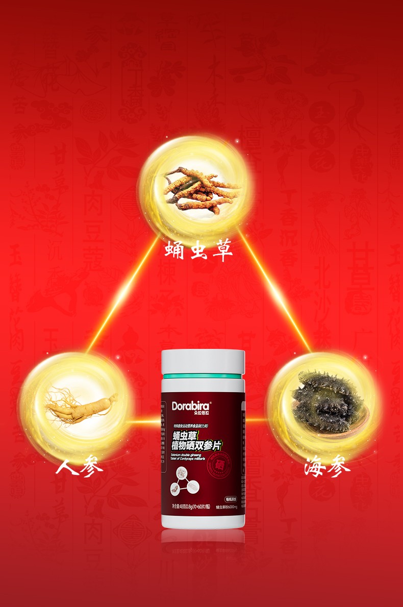 朵拉倍拉蛹蟲(chóng)草植物硒雙參片產(chǎn)品展示