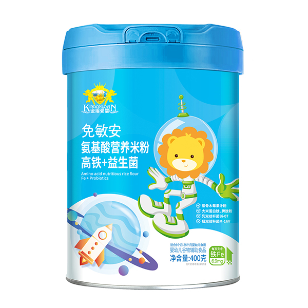 金盾愛嬰免敏安氨基酸營養(yǎng)米粉 高鐵+益生菌產(chǎn)品展示