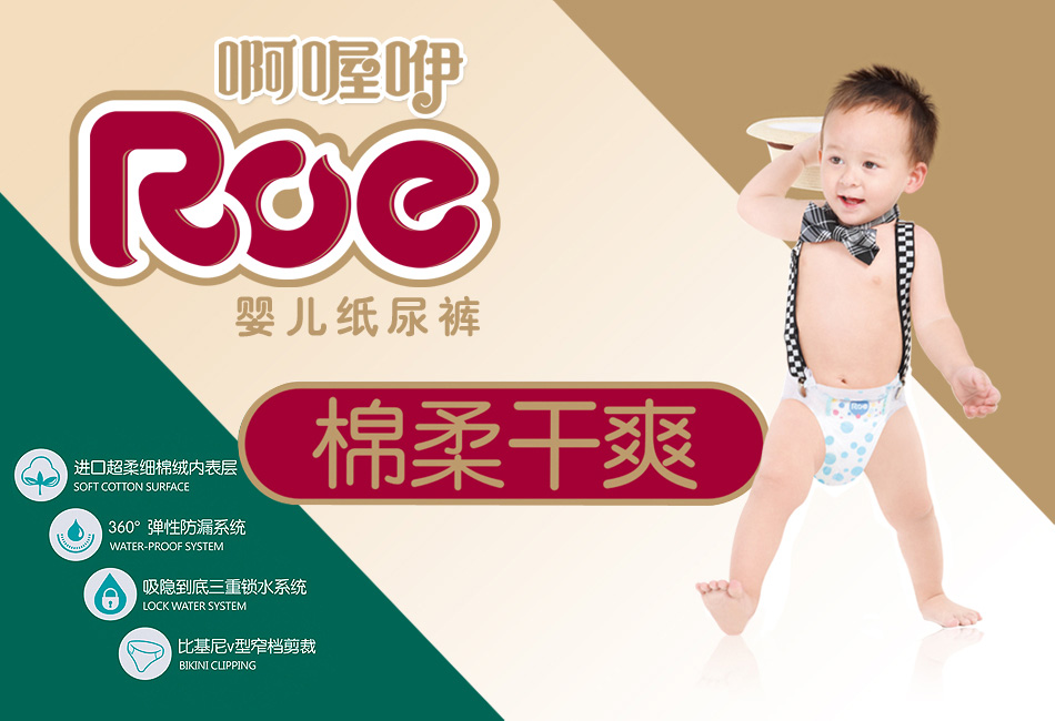 ROE系福建省漢和護(hù)理用品有限公司旗下紙尿褲品牌,供應(yīng)歐美和澳大利亞、新西蘭各大超市市場。以優(yōu)異的性價比,在Pak‘nSave、Woolworths、New World、Coles、Kmarf等超市熱銷,并在2011、2012年連續(xù)被Pak‘nSabe推薦為最高性價比紙尿褲品牌、生產(chǎn)企業(yè)。