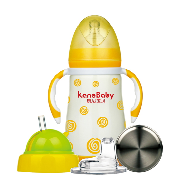 康尼寶貝寬口四合一保溫奶瓶套裝 黃色產(chǎn)品展示