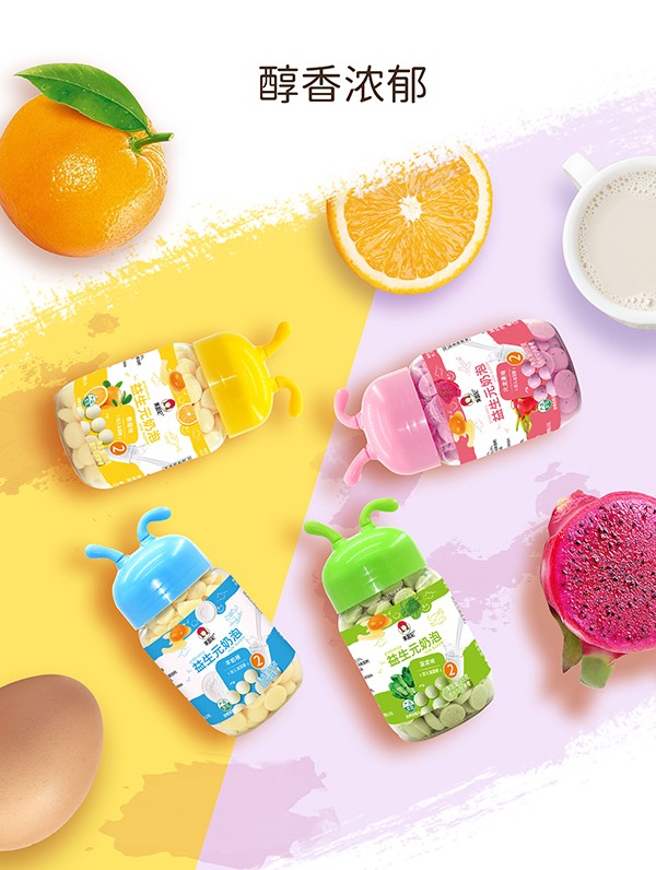 果蔬妃益生元奶泡系列有羊奶味、香橙味、火龍果味以及菠菜味四種口味,精選進(jìn)口優(yōu)質(zhì)馬鈴薯淀粉、奶粉等優(yōu)質(zhì)原料,特別添加海藻糖配方,呵護(hù)消化,甜度適中,入口即化,天然美味,好吃又好玩。